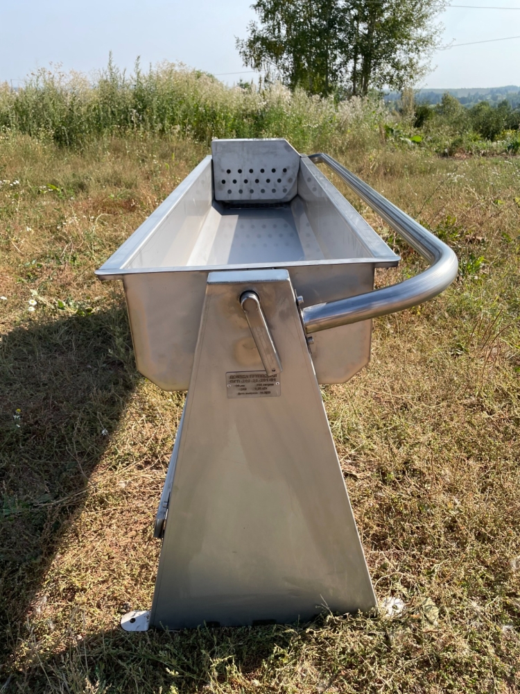 Ванна групповой поилки изготовлена из нержавеющей стали толщиной 1,5мм, марки– AISI 304. Также возможно изготовление из стали - AISI 201, AISI 430. Сварка ванны выполняется методом TIG, исключительно, в защите аргона. Объем наполнения ванны может быть различным. К ваннам 200л и более приваривается стяжка для предотвращения расширения корпуса.