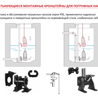 Для монтажа и обслуживания погружных насосов и миксеров в резервуарах они комплектуются надежными кронштейнами, снабженными лебедками.