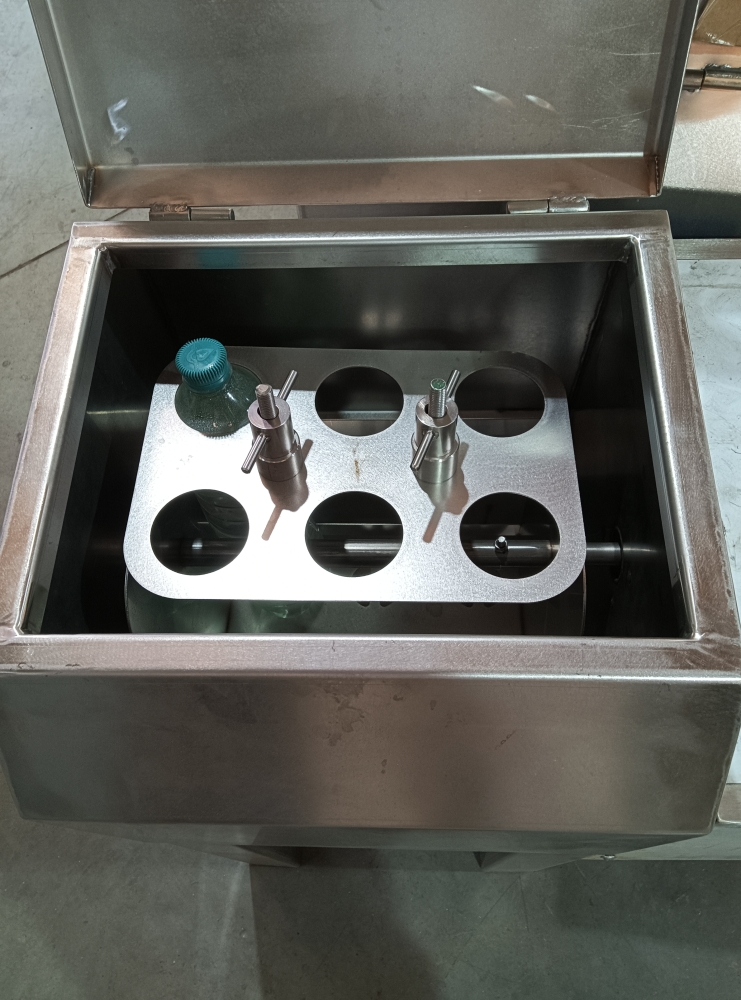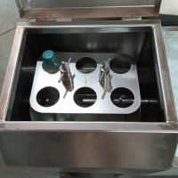 Принцип действия состоит в подогреве и автоматическом поддержании температуры рабочей жидкости с необходимой точностью за счет периодического включения и выключения нагревательного элемента с одновременным перемешиванием рабочей жидкости и размораживаемого молозива за счет качающейся платформы, установленной в ванне с рабочей жидкостью и снабженного электромеханическим приводом.