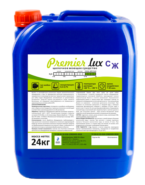 Щелочное беспенное моющее средство Premier Lux - супер жесткая (для воды любой жесткости) 24кг.