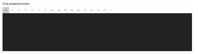 «Код видеоролика» — необязательно для заполнения.Для вставки видео необходимо перевести редактор в режим кода.