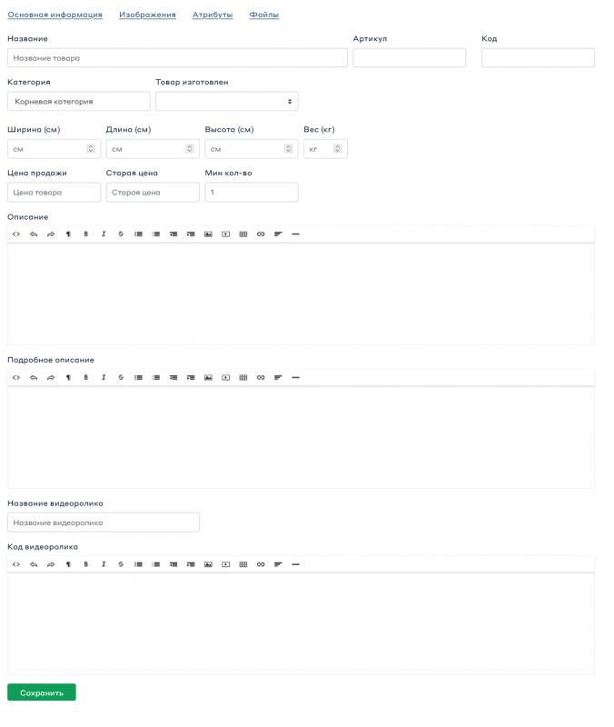 2. Заполните вкладку «Основная информация», она содержит основные сведения о товаре.