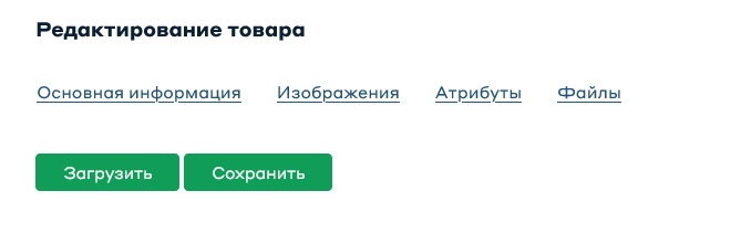 В этом разделе карточки товара можно добавить сопроводительные документы к товару, нажмите «Загрузить» и выберете нужные файлы, затем сохраните их.