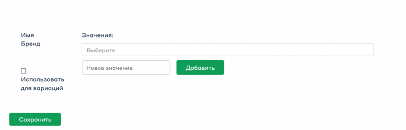 Обязательные для заполнения – «Бренд», «Страна изготовитель», «Вид».